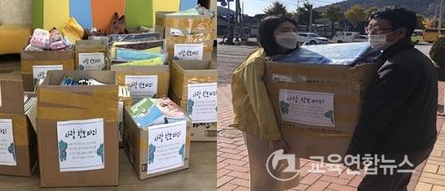 ÀÌ¿¡ ³ªÁÖ±³À°Áö¿øÃ»Àº ±âºÎÀÚÀÇ µû¶æÇÏ°í ¼ÒÁßÇÑ ±âºÎÀÇ Àǹ̰¡ ¾ÆÀ̵鿡°Ô ±×´ë·Î Àü´ÞµÇ¾î ¿ä±äÇÏ°Ô »ç¿ëµÉ ¼ö ÀÖµµ·Ï ³ªÁÖ °ü³»Áö¿ª¾Æµ¿¼¾ÅÍ¿¡ °øÃ¥, Çʱ⵵±¸, ¾Ç±â, ½Ç³»È­, ¹Ì¼ú¿ëǰ, Àå³­°¨ µî ´Ù¾çÇÑ ±âºÎ ¹°Ç°À» Àü´ÞÇÏ¿´´Ù.