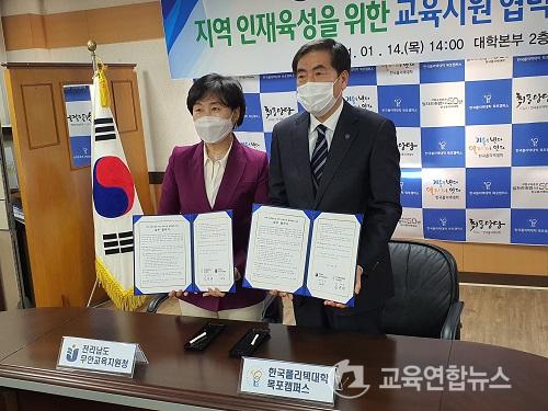 14ÀÏ(¸ñ) Çѱ¹Æú¸®ÅØ´ëÇÐ ´ëÇк»ºÎ ȸÀǽǿ¡¼­ ¡ºÁö¿ª ÀÎÀçÀ°¼ºÀ» À§ÇÑ ±³À°Áö¿ø Çù·Âü°è ±¸Ãà¡»À» À§ÇØ ¹«¾È±³À°Áö¿øÃ»(±³À°Àå ±è ¶õ)°ú Çѱ¹Æú¸®ÅØ´ëÇÐ(ÇÐÀå ±èÃáÀç)ÀÌ ¾÷¹«Çù¾àÀ» ü°áÇß´Ù.