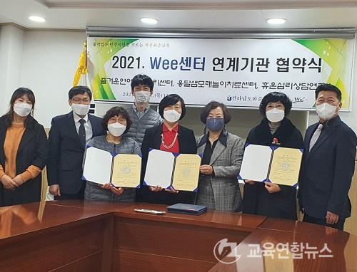 Àü¶ó³²µµ ȼø±³À°Áö¿øÃ» Wee¼¾ÅÍ´Â À̳¯ 3°³ ±â°ü°úÀÇ Çù¾àÀ» ÅëÇØ ½É¸®»ó´ã±â°ü, »çȸº¹Áö±â°ü, û¼Ò³â Ȱµ¿Áö¿ø±â°ü µî ÃÑ 23°³ÀÇ À¯°ü±â°üÀÇ Çù¾àü°è¸¦ ±¸ÃàÇÏ°Ô µÇ¾ú´Ù.