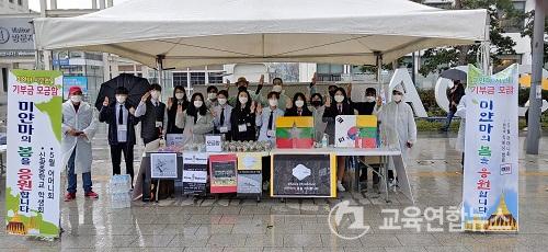 ½Å±¤Áß ÇлýµéÀÇ ¹Ì¾á¸¶ ½Ã¹ÎÀ» ÀÀ¿øÇÏ´Â ÀÛǰ Àü½Ãȸ¿Í ¹Ì¾á¸¶ ½Ã¹Î µ½±â¸¦ À§ÇÑ ÀÚ¼± ¸ð±ÝÇÔ, ³ª´®ÀåÅÍ(¿À¿ù¾î¸Ó´Ïȸ ¹× °¢ÈÁßÇб³ Çлýȸ¿Í °øµ¿ÃßÁø)¸¦ °³ÃÖÇØ Àü¾× 5¡¤18 ±â³äÀç´Ü¿¡ ¹Ì¾á¸¶ µ½±â ¼º±ÝÀ» ±âºÎÇß´Ù.