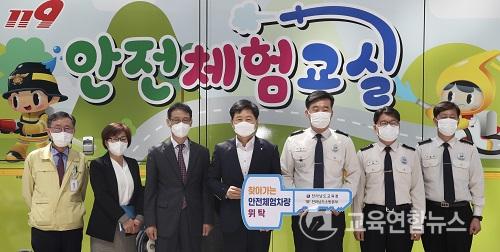 ¡¼¹«¾È=±³À°¿¬ÇÕ´º½º¡½¹Ú»ó¿õ ±âÀÚ= Àü¶ó³²µµ±³À°Ã»(±³À°°¨ Àå¼®¿õ)ÀÌ Àü¶ó³²µµ¼Ò¹æº»ºÎ¿Í ¼ÕÀ» Àâ°í ¡®À̵¿Çü ¾ÈÀüüÇè±³½Ç¡¯À» ¿î¿µÇÑ´Ù.