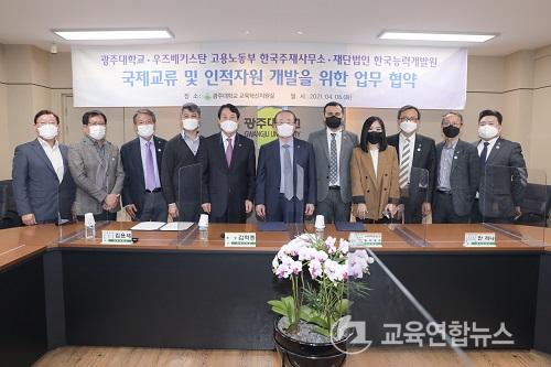±¤ÁÖ´ë´Â 6ÀÏ Çб³ ÇàÁ¤°ü ±³À°Çõ½ÅÁö¿ø½Ç¿¡¼­ ¿ìÁŰ½ºÅº °í¿ë³ëµ¿ºÎ Çѱ¹ÁÖÀç»ç¹«¼Ò, Àç´Ü¹ýÀÎ Çѱ¹´É·Â°³¹ß¿ø¿Í ±¹Á¦±³·ù ¹× ÀÎÀûÀÚ¿ø °³¹ßÀ» À§ÇÑ ¾÷¹«Çù¾àÀ» ü°áÇß´Ù.