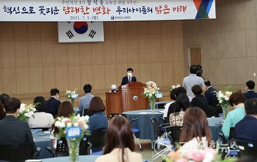 ¡¼¹«¾È=±³À°¿¬ÇÕ´º½º¡½¹Ú»ó¿õ ±âÀÚ= Àü¶ó³²µµ±³À°Ã» Àå¼®¿õ±³À°°¨Àº 5ÀÏ ¿ù·ÊÁ¶È¸¿¡¼ ÁÖ¹ÎÁ÷¼± 3±â Àü³²±³À°¿¡ ´ëÇÑ ¡°´ëÀüȯ ½Ã´ë, ´õ º¯ÈÇÏ°í ´õ Çõ½ÅÇÏÀÚ¡±°í ´ë¾ÈÀ» Á¦½ÃÇß´Ù.