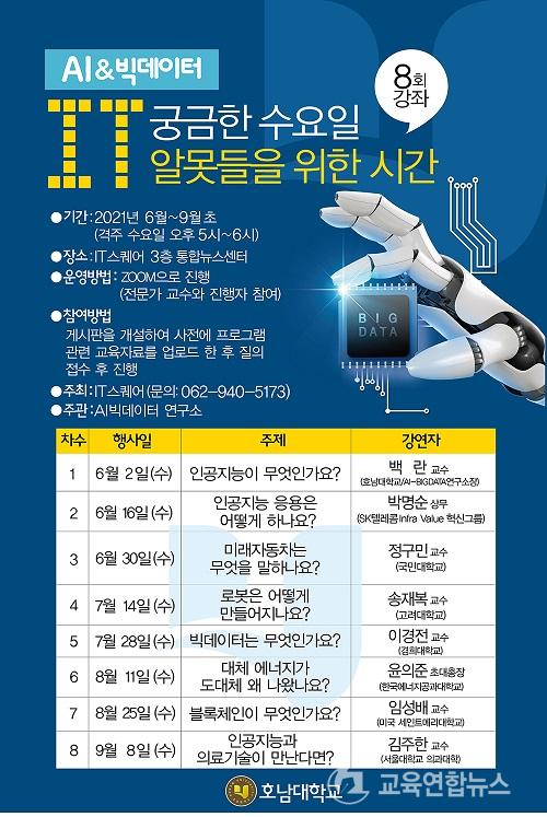 IT¾Ë¸øµéÀ» À§ÇÑ Æ¯°Àº ÃÑ 8ȸÂ÷ °¿¬ ÀÏÁ¤À¸·Î °ÝÁÖ ¼ö¿äÀÏ È£³²´ëÇб³ IT½ºÄù¾î 3Ãþ ÅëÇÕ´º½º¼¾ÅÍ¿¡¼ ZOOM°ú »ý¹æ¼Û È£³²´ëÇб³ TV À¯Æ©ºê¸¦ ÅëÇØ ½Ç½Ã°£ ¹æ¼ÛµÇ¸ç, ¿À´Â 7¿ù28ÀÏ ¿ÀÈÄ 5½Ã ¡®ºòµ¥ÀÌÅÍ´Â ¹«¾ùÀΰ¡¿ä?¡¯¸¦ ÁÖÁ¦·Î °æÈñ´ëÇб³ À̰æÀü ±³¼öÀÇ 5ȸÂ÷ °¿¬ÀÌ ÆîÃÄÁø´Ù.