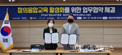 ¡¼¿µ¾Ï=±³À°¿¬ÇÕ´º½º¡½¹Ú»ó¿õ ±âÀÚ= Àü¶ó³²µµ¿µ¾Ï±³À°Áö¿øÃ»(±³À°Àå ±è¼º¾Ö)Àº µ¿½Å´ëÇб³ ¸ÞÀÌÄ¿½ºÆäÀ̽º »ç¾÷´Ü(´ÜÀå À̵¿ÈÖ), µ¿½Å´ëÇб³ Áö¿ªÇõ½Å »ç¾÷´Ü(´ÜÀå ¿¬¼®ÁÖ)°ú 29ÀÏ(¸ñ) ¿µ¾Ï±³À°Áö¿øÃ» ´ëȸÀǽǿ¡¼­ âÀÇÀ¶ÇÕ±³À° Ȱ¼ºÈ­¸¦ À§ÇÑ ¾÷¹«Çù¾à(MOU)¸¦ ü°áÇß´Ù.