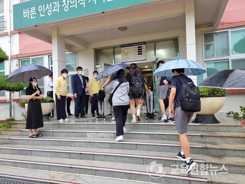 ±è¶õ ±³À°ÀåÀº Á¤´ö¿µ ±³À°Áö¿ø°úÀå°ú ÇÔ²² ÇлýµéÀÌ ¾ÈÀüÇÏ°Ô µî±³ÇÏ´Â ¸ð½ÀÀ» »ìÇǰí, µî±³ ½Ã ¹ß¿­Ã¼Å© »çÇ×, °Å¸®µÎ±â ´ëÃ¥, Äڷγª19 »óȲ ½Ã ´ëÀÀ¹æ¾È µî¿¡ ´ëÇÑ ÇöÀå È®ÀÎÀ» Çß´Ù.