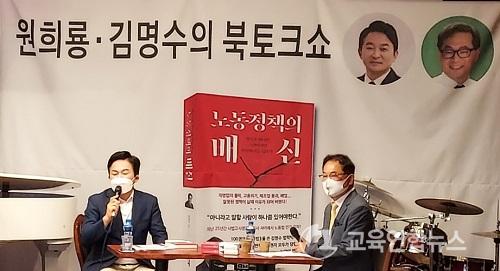 ¡¼±¤ÁÖ=±³À°¿¬ÇÕ´º½º¡½¹Ú»ó¿õ ±âÀÚ= 27ÀÏ ±¤ÁÖ »ó¹«Áö±¸ ¸ð Ä«Æä¿¡¼ Çѱ¹³ëµ¿°æÁ¦¿¬±¸¿ø(¿øÀå ±è¸í¼ö) ÁÖÃÖ·Î ±¹¹ÎÀÇÈû ´ë¼±ÁÖÀÚÀÎ ¿øÈñ·æ Àü Á¦ÁÖÁö»ç¿Í ¡®³ëµ¿Á¤Ã¥ÀÇ ¹è½Å¡¯ÀÇ ÀúÀÚÀÎ ±è¸í¼ö¿øÀå°ú ºÏ ÅäÅ©¼îÀ» °¡Á³´Ù.