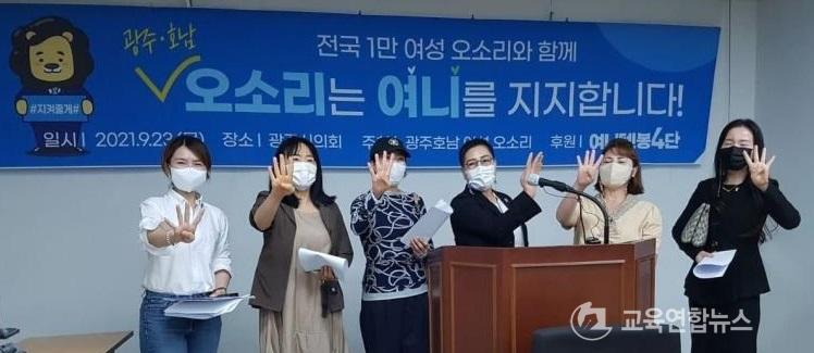 '±¤ÁÖÈ£³² ¿©¼º ¿À¼Ò¸®'µéÀº Áö³­ 23ÀÏ ¿ÀÈÄ(4½Ã) ±¤ÁÖ½ÃÀÇȸ¿¡¼­ °¡Áø À̳«¿¬ Èĺ¸ ÁöÁö¼±¾ðÀ» ÅëÇØ ¡°¿©¼ºÀÇ »îÀ» ÁöÄÑÁÖ´Â ³ª¶ó, ¾ÆÀÌ ³º°í ½ÍÀº ³ª¶ó¸¦ ¾à¼ÓÇÑ À̳«¿¬À» ÁöÁöÇϸç, ¿©¼º¹üÁË ±ÙÀý°ú ¿©¼ºÀÇ °æ·Â´ÜÀýÀ» ¸·±â À§ÇØ À̳«¿¬ÀÇ À̸§À¸·Î ¾à¼ÓÇÑ Á¤Ã¥À» ÁöÁöÇÑ´Ù¡±°í ¹àÇû´Ù.