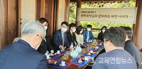 À̹ø ½Å±ÔÀÓ¿ëÀÚ ´ëÈÀÇ ½Ã°£Àº, ¾Õ¼ ½Ç½ÃµÈ ¡®2021. ¼øÃµÁö¿ª ÀλçºÐ¾ß °æÃ»¿Ã·¹¡¯¸¦ ¸¶Ä¡°í Âü¼®ÇÑ ±èÃáÈ£ Àü¶ó³²µµ±³À°Ã» ÇàÁ¤±¹Àå°ú ÇÔ²²ÇÏ¿´À¸¸ç, ¡ã¼ÒÅëÇÏ´Â Á¶Á÷¹®È Á¶¼º ¡ã¼¼´ë°£ÀÇ ÀÌÇØ ¡ã°øÁ÷»ýȰÀÇ ÀûÀÀ µîÀ» ¸ñÇ¥·Î, °¡À» Á¤Ãë°¡ ¹°¾À dz±â´Â 2023³â ¼øÃµ¸¸±¹Á¦Á¤¿ø¹Ú¶÷ȸ °³ÃÖ¿¹Á¤ÁöÀÎ ¼øÃµ¸¸±¹°¡Á¤¿ø¿¡¼ ´ÙµµÀÇ ½Ã°£À» °¡Áö¸ç ÀÚÀ¯·Î¿î ´ëÈÀÇ ¹æ½ÄÀ¸·Î ÁøÇàµÇ¾ú´Ù.
