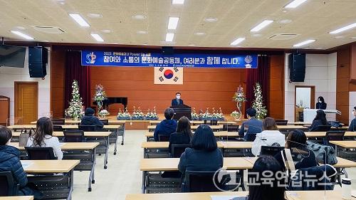 ¡¼¿©¼ö=±³À°¿¬ÇÕ´º½º¡½¹Ú»ó¿õ ±âÀÚ= Àü¶ó³²µµÇлý±³À°¹®Èȸ°ü(°üÀå ±èŹ®)Àº Áö³ 8ÀÏ(È) Çб³ ¹®È¿¹¼úÇÁ·Î±×·¥ Áö¿ø ¹× Áö¿ª¹Î Æò»ýÇнÀ ¿î¿µÀ» À§ÇÑ ¡¸2022. ¹®È¿¹¼úÇÁ·Î±×·¥ °»ç ¿öÅ©¼ó¡¹À» ½Ç½ÃÇß´Ù.
