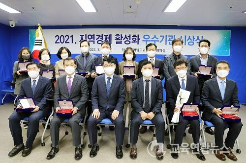 Àü¶ó³²µµ±³À°Ã»Àº 28ÀÏ(¿ù) û»ç ÁßȸÀǽǥ°¿¡¼ ¡®2021³â Áö¿ª°æÁ¦ Ȱ¼ºÈ ¿ì¼ö±â°ü ½Ã»ó½Ä¡¯À» °®°í Áö¿ª°æÁ¦ Ȱ¼ºÈ¿¡ ±â¿©µµ°¡ ³ôÀº 16°³ ±â°ü¿¡ ´ëÇØ ǥâÀåÀ» ¼ö¿©Çß´Ù.
