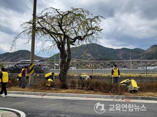 À̳¯ Àü¶ó³²µµ±³À°Ã» Á÷¿ø 20¿© ¸íÀº ±¤¾çÇÞ»ìÇб³ÀÇ °³±³¸¦ ÃàÇÏÇϰí, ¹ßÀüÀ» ±â¿øÇÏ´Â Àǹ̸¦ ´ã¾Æ ±³³»¿¡ öÂß 1,000 ±×·ç¸¦ ½É°í ÁÖº¯ ȯ°æÀ» Á¤ºñÇß´Ù.
