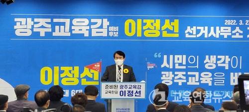 ¡¼±¤ÁÖ=±³À°¿¬ÇÕ´º½º¡½¹Ú»ó¿õ ±âÀÚ= ÀÌÁ¤¼± ±¤Áֽñ³À°°¨ ¿¹ºñÈĺ¸(Àü ±¤ÁÖ±³´ë ÃÑÀå)´Â À±¼®¿ ´ç¼±ÀÎÀÇ ´ëÇ¥ °ø¾àÀÎ ÀÚ»ç°í À¯Áö¿Í ÀÏÁ¦°í»ç Àü¸é ºÎȰ¿¡ ºÐ¸íÈ÷ ¹Ý´ëÇÑ´Ù°í ¹ßÇ¥Çß´Ù.