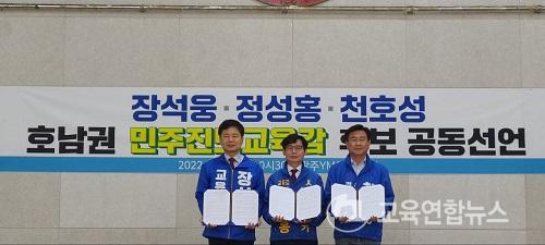 ¡¼±¤ÁÖ=±³À°¿¬ÇÕ´º½º¡½¹Ú»ó¿õ ±âÀÚ= Á¤¼ºÈ«¡¤Àå¼®¿õ¡¤ÃµÈ£¼º È£³²±Ç ¹ÎÁÖÁøº¸±³À°°¨ È帵éÀº 28ÀÏ(¸ñ) ¿ÀÀü 10½Ã30ºÐ ±¤ÁÖYMCA ¹«Áø°ü¿¡¼ ±âÀÚȸ°ßÀ» ¿°í ¡°À±¼®¿ Á¤±ÇÀÇ Æ¯±Ç±³À°°ú °æÀï±³À°¿¡ ¸Â¼ ¾ÆÀ̵éÀÇ »îÀ» ÁöÄѳ»°Ú´Ù¡±¸ç °øµ¿±³À°°ø¾àÀ» ¹ßÇ¥Çß´Ù.