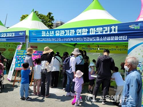 À̹ø ¾Æ¿ô¸®Ä¡´Â ÃàÁ¦ ù³¯ÀÎ 5ÀÏ ¿Ïµµ±³À°Áö¿øÃ» Wee¼¾Å͸¦ ½ÃÀÛÀ¸·Î 4°³ ±â°üÀÌ ÇÔ²² Âü¿©ÇØ ÃàÁ¦ÀåÀ» ¹æ¹®ÇÑ Çлý ¹× Çкθð ¹× Áö¿ªÁֹΰú °ü±¤°´À» ´ë»óÀ¸·Î °¢ ±â°ü È«º¸ ¹× °¢Á¾ üÇèȰµ¿ µîÀÇ ¼ºñ½º¸¦ Á¦°øÇß´Ù.