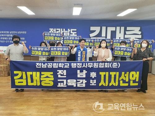 ¡¼¼øÃµ=±³À°¿¬ÇÕ´º½º¡½¹Ú»ó¿õ ±âÀÚ= ±è´ëÁß Àü³²±³À°°¨ Èĺ¸¿¡ ´ëÇÑ ÁöÁö¼±¾ðÀÌ ÀÕµû¸£°í ÀÖ´Â °¡¿îµ¥ Àü³²°ø¸³Çб³ ÇàÁ¤»ç¹«¿øÇùȸ°¡ ¶Ç´Ù½Ã ±è Èĺ¸ ÁöÁö¼±¾ðÀ» Çß´Ù.