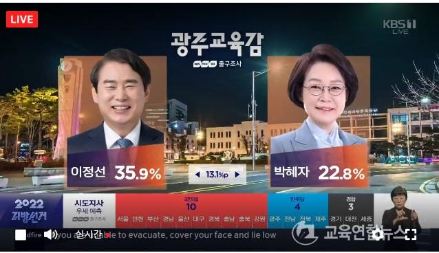 ÀÌ¾î ±¤ÁÖ ±³À°°¨Èĺ¸¿¡¼´Â ÀÌÁ¤¼± 35.9%, ¹ÚÇýÀÚ 22.8%·Î 13.1%Â÷À̰¡ ³ °ÍÀ¸·Î »çÀüÃⱸ Á¶»çµÆ´Ù.