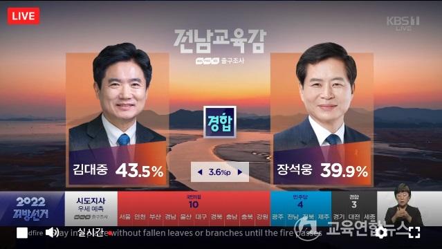 Á¢ÀüÀÌ ¹ú¾îÁö°í ÀÖ´Â Àü³²±³À°°¨Àº Áøº¸¼ºÇâÀ¸·Î ºÐ·ùµÇ´Â Àü³² ±³À°°¨ ¼±°Å¿¡¼´Â ±è´ëÁß È帰¡ 43.5%·Î, Àå¼®¿õ Èĺ¸(39.9%)·Î 3.6%Æ÷ÀÎÆ® ¾Õ¼¹°ÍÀ¸·Î ³ªÅ¸³ª °æÇÕÁö¿ªÀ¸·Î ºÐ·ù µÆ´Ù. Àü³² ¼±°Å °á°ú¿¡ µû¶ó ÃÖÁ¾ ÆÇ¼¼°¡ ÆÇ°¡¸§³¯ °ÍÀ¸·Î º¸ÀδÙ.