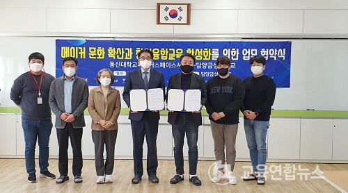 ¡¼´ã¾ç=±³À°¿¬ÇÕ´º½º¡½ÀÌ¿µÁö±âÀÚ= ´ã¾ç±Ý¼ºÁßÇб³(±³Àå ±èöÁÖ)´Â 10¿ù 25ÀÏ(È­) µ¿½Å´ëÇб³ ¸ÞÀÌÄ¿½ºÆäÀ̽º»ç¾÷´Ü(´ÜÀå À̵¿ÈÖ)°ú 4Â÷ »ê¾÷Çõ¸í ½Ã´ë¸¦ »ì¾Æ°¥ ¿ì¸® ÇлýµéÀÌ ÀÚ½ÅÀÇ »îÀ» ¾Æ¸§´ä°Ô µðÀÚÀÎÇÒ ¼ö ÀÖ´Â ±â¹ÝÀ» Á¶¼ºÇϰíÀÚ Ã¢ÀÇÀ¶ÇÕ±³À°ÀÇ È°¼ºÈ­ ¹× AI ºÐ¾ß ¿ì¼ö ÀÎÀç ¾ç¼ºÀ» À§ÇÑ ¾÷¹« Çù¾àÀ» ü°áÇß´Ù.
