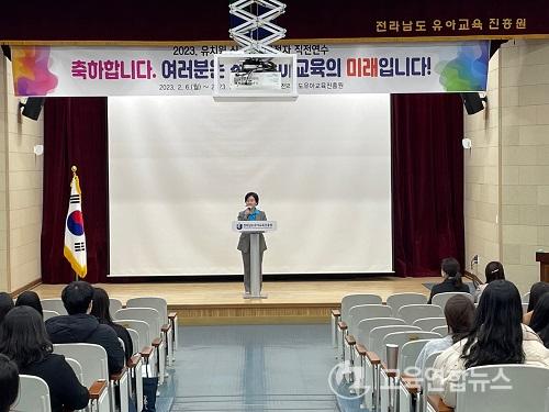 ¼Á¤ÀÎ ¿øÀåÀº ¡°Àü³²À¯¾Æ±³À°ÀÇ ¹Ì·¡ÀÎ »õ³»±â ¼±»ý´ÔµéÀÇ Ã¹ Ãâ¹ßÀ» ÇÔ²² ÇØ¼ Á¤¸» ±â»Ú¸ç, ÁøÈï¿øµµ ´Ù¾çÇÑ ¿¬¼ö¸¦ ±âȹÇÏ¿© ¼±»ý´ÔµéÀÌ ÇöÀå¿¡ Àß ÀûÀÀÇÒ ¼ö ÀÖµµ·Ï Àû±ØÀûÀ¸·Î Áö¿øÇϰڴÙ.¡±°í ¸»Çß´Ù.