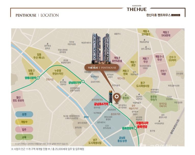 ÇѽŰø¿µ(ÁÖ)´Â ¡ºÇѽŴõÈÞ ÆæÆ®ÇϿ콺¡»¿¡ ´ëÇØ ¡ß±Ý³²·Î4°¡¿ª ¹Ù·Î ¾Õ¿¡ ÀÔÁö, µµº¸ 1ºÐ °Å¸® (1, 2È£¼± ÁöÇÏö ȯ½Â¿ª °³Åë ¿¹Á¤), Á¦2¼øÈ¯µµ·Î ÀÎÁ¤ÇØ ±¤ÁÖ Àü¿ªÀ¸·Î À̵¿ ¿ëÀÌ ±³ÅëÀÌ Æí¸®-ÃÊ¿ª¼¼±Ç ¡ß¹Ù·Î ¾Õ¿¡ 100³â ÀüÅëÀÇ ±¤ÁÖ Áß¾ÓÃÊ, ¿À·£ ¿ª»çÀÇ Àü³²¿©°í À§Ä¡Çϰí Çм¼±Ç ¿ì¼ö ¡ß·Ôµ¥¹éÈ­Á¡, NC ¹éÈ­Á¡, ÃæÀå·Î¿Í µ¿¸®´Ü±æ µî »ó±ÇÀÌ ±Ùó¿¡ À§Ä¡-¸ô¼¼±Ç, ¡ß»óÀ§1%¸¸ ´©¸®´Â È£ÅÚ±Þ ÇÏÀÌ¿£µå ¶óÀÌÇÁ ¡ß ƯȭµÈ È£ÅÚ±Þ ÇÏÀÌ¿£µå ÀÎÅ׸®¾î ¸¶°¨Àç ¡ßÁö¿ª³» ÃÖ°í³ôÀÌ 25Ãþ µ¶º¸Àû ÀÚÁ¸½É - ·£µå¸¶Å© ¡ß2ÃþÁý±¸Á¶-Ưȭ¼³°è ¹× ¹Ì·¡°¡Ä¡ µîÀ» Ư¡À» Á¶¸íÇß´Ù.