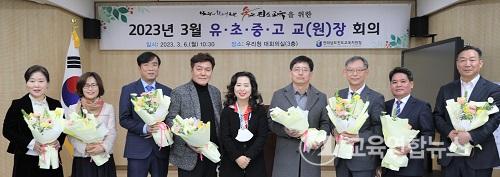 2023. 3. 1.ÀÚ·Î ºÎÀÓÇÑ ÃÊ・Áßµî ±³Àå ÃàÇÏ Àλç¿Í ²É´Ù¹ß ÁõÁ¤À» ½ÃÀÛÀ¸·Î, ±³À°Àü¹®Á÷¿ø ¹× ÆÀÀå ¼Ò°³, 2023³âµµ »ó¹Ý±â ±³À°Áö¿øÃ» ÁÖ¿ä ¾÷¹« ¾È³», ÇÑ °ÉÀ½ ´õ ³ª¾Æ°¡´Â Áøµµ±³À°À» À§ÇÑ Çö¾È °øÀ¯ ¹× Çù·Â »çÇ׿¡ ´ëÇØ ÇùÀÇÇß´Ù.