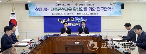 ¡¼¹«¾È=±³À°¿¬ÇÕ´º½º¡½¹Ú»ó¿õ ±âÀÚ= Àü¶ó³²µµ±³À°Ã»°ú Àü³²±³Å뿬¼ö¿øÀÌ 23ÀÏ(¸ñ) Àü¶ó³²µµ±³À°Ã» »óȲ½Ç¿¡¼ ¡®Ã£¾Æ°¡´Â ±³Åë¾ÈÀü±³À° Ȱ¼ºÈ¡¯¸¦ À§ÇÑ ¾÷¹«Çù¾à(MOU)À» ü°áÇß´Ù.