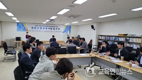 À̳¯ TFÇùÀÇȸ¿¡´Â ÃÊ¡¤Áßµî ±³»ç, ±³Àå, ±³°¨, ¼ö¿µÀü¹®°¡, ±³À°Àü¹®Á÷¿ø µî ÃÑ 30¸íÀ¸·Î ±¸¼ºµÈ À§¿øµéÀÌ Âü¿©ÇØ Àü³² ¼ö¿µ½Ç±â(»ýÁ¸) ±³À°ÀÇ ¹ßÀüÀû ¹æÇâ¿¡ ´ëÇØ ³íÀÇÇß´Ù.