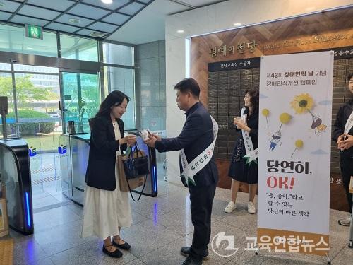 ¡¼¹«¾È=±³À°¿¬ÇÕ´º½º¡½¹Ú»ó¿õ ±âÀÚ= Àü¶ó³²µµ±³À°Ã»ÀÌ 20ÀÏ(¸ñ) Á¦43ȸ Àå¾ÖÀÎÀÇ ³¯À» ¸Â¾Æ ¡®ÇÔ²² ±æÀ» ã´Ù, ÇÔ²² ±æÀ» °È´Ù¡¯¶ó´Â ÁÖÁ¦·Î ÀÏ»óÀû Àå¾Ö°ø°¨ ¹®È­ Á¤ÂøÀ» À§ÇÑ Àå¾ÖÀνݳ¼± Ä·ÆäÀÎÀ» ½Ç½ÃÇß´Ù.