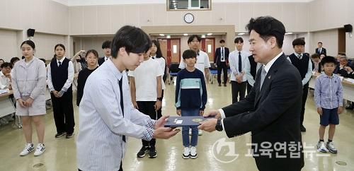 ¡¼¹«¾È=±³À°¿¬ÇÕ´º½º¡½¹Ú»ó¿õ ±âÀÚ= Àü¶ó³²µµ±³À°Ã»(±è´ëÁß ±³À°°¨)ÀÌ 5¿ù 11ÀÏ(¸ñ) û»ç ´ëȸÀǽǿ¡¼ Àü±¹µ¿°èüÀ°´ëȸ ¿ì¼ö Çлý¼±¼ö¿¡°Ô ÀåÇÐÁõ¼¸¦ ¼ö¿©Çß´Ù.