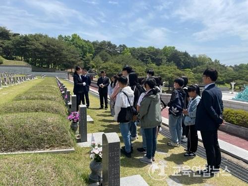 °­Áø 5¡¤18¹ÎÁÖÈ­ ¿îµ¿ÀÇ ¿ª»ç°¡ ´ã°Ü ÀÖ´Â °­Áø±ºÃ» ¾Õ »çÀûÁö¸¦ ½ÃÀÛÀ¸·Î ±¹¸³5¡¤18¹ÎÁÖÈ­¿îµ¿ ¹ÎÁÖ¹¦Áö¸¦ ¹æ¹®ÇÏ¿© Âü¹èÇÏ¿´´Ù. ÇлýµéÀº ¹ÎÁÖÈ­¿îµ¿ÀÇ ¿ª»ç°¡ ´ã°Ü ÀÖ´Â 5¡¤18¹ÎÁÖÈ­¿îµ¿±â·Ï°ü, ÀüÀϺôµù, ¿¾ Àü³²µµÃ» ¾ÕÀ» ¹æ¹®ÇÏ¿© ¹ÎÁÖÈ­ ¿îµ¿ÀÇ Á¤½Å°ú À̳äÀ» ¾Ë°í ¹ÎÁֽùοª·®À» Ű¿ì´Â ½Ã°£À» °¡Á³´Ù.