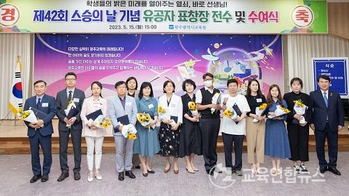 ¡¼±¤ÁÖ=±³À°¿¬ÇÕ´º½º¡½¹Ú»ó¿õ ±âÀÚ= ±¤Áֽñ³À°Ã»ÀÌ Á¦42ȸ ½º½ÂÀÇ ³¯À» ¸Â¾Æ ¿ÀÀü 8½Ã º»Ã» Çö°ü¿¡¼ ¡®¿À´ÃÀÇ ±¤ÁÖ±³À°Àº ¼±»ý´Ô ´öºÐÀÔ´Ï´Ù¡¯ Çà»ç¸¦ °³ÃÖÇß´Ù. Çà»ç¿¡¼´Â Ãâ±Ù±æ »ö¼ÒÆù °ø¿¬°ú ÇÔ²² Àü Á÷¿ø¿¡°Ô Ä«³×ÀÌ¼Ç ¹× ¶±À» Àü´ÞÇß´Ù.