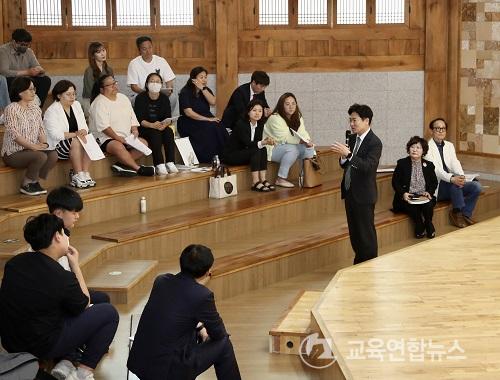 5¿ù 16ÀÏ ¿µ¾ÏÀ¾ °¡¾ß±Ý»êÁ¶±â³ä°ü¿¡¼­ ¿­¸° ¿µ¾Ï±³À°°øµ¿Ã¼ ¿¬¼ö¿¡¼­ ±è´ëÁß Àü³²±³À°°¨ÀÌ ¹Ì·¡±³À°À» ÁÖÁ¦·Î Âü¼®ÀÚµé°ú ´ëÈ­Çϰí ÀÖ´Ù.