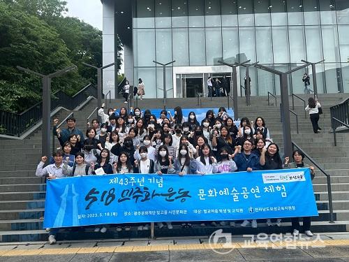 Àü¶ó³²µµº¸¼º±³À°Áö¿øÃ»(±³À°Àå ÀüÈñ)Àº 5¿ù 18ÀÏ(¸ñ) ±¤ÁÖ¹®È­Àç´Ü ºû°íÀ» ±¤Áֽùι®È­°ü¿¡¼­ 5¡¤18¹ÎÁÖÈ­¿îµ¿ Á¦43ÁÖ³âÀ» ¸ÂÀÌÇÏ¿© ¹ú±³¿©Áß Çлý ¹× ±³Á÷¿ø, ûÁ÷¿ø ´ë»ó ¹®È­¿¹¼ú°ø¿¬ ¹ÂÁöÄÃÀ» °ü¶÷Çß´Ù.