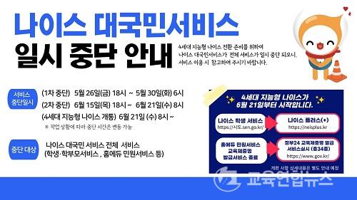 À̹ø ÀϽà Áß´ÜÀº ±³À°ºÎ¿¡¼ ±³À°ÇàÁ¤¾÷¹« È¿À²¼º Çâ»ó ¹× ±³À°°ü·Ã ´ë±¹¹Î¼ºñ½º ÆíÀǼº °È¸¦ À§ÇØ 4¼¼´ë Áö´ÉÇü ³ªÀ̽º ÀüȯÀ» ÁغñÇÏ´Â °³Æí ÀÛ¾÷À» ÇÏ´Â µ¥ µû¸¥ °ÍÀÌ´Ù.
