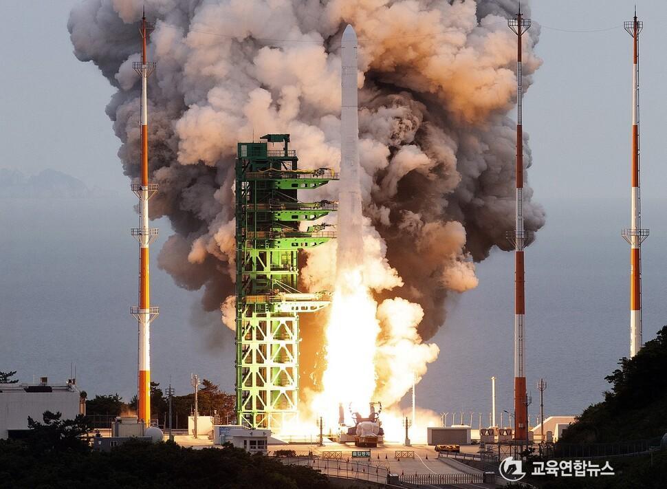 ±¹³» µ¶ÀÚ ±â¼ú·Î °³¹ßµÈ Çѱ¹Çü ¹ß»çü ´©¸®È£(KSLV-¥±)°¡ 25ÀÏ ¿ÀÈÄ Àü³² °íÈﱺ ³ª·Î¿ìÁÖ¼¾ÅÍ¿¡¼­ ¹ß»çµÇ°í ÀÖ´Ù