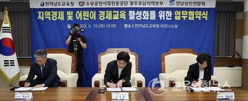 ¡¼¹«¾È=±³À°¿¬ÇÕ´º½º¡½¹Ú»ó¿õ ±âÀÚ= Àü¶ó³²µµ±³À°Ã»ÀÌ 6¿ù 15ÀÏ(¸ñ) û»ç ³» ºñÁî´Ï½º½Ç¿¡¼ ¼Ò»ó°øÀνÃÀåÁøÈï°ø´Ü±¤ÁÖÈ£³²Áö¿ªº»ºÎ, Àü³²»óÀο¬ÇÕȸ¿Í Áö¿ª°æÁ¦ ¹× ¾î¸°ÀÌ °æÁ¦±³À° Ȱ¼ºÈ¸¦ À§ÇÑ ¾÷¹«Çù¾àÀ» ü°áÇß´Ù.