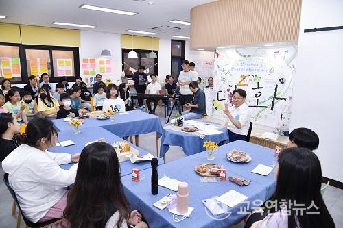 °­±âÁ¤ ±¤ÁÖ±¤¿ª½ÃÀåÀÌ 26ÀÏ ¿ÀÈÄ ºÏ±¸ ¹®ÈïÃʵîÇб³¿¡¼­ ¿­¸° ¹Î¼±8±â 1ÁÖ³â 'ºû³ª´Â ¼¼´ë¿ÍÀÇ ´ëÈ­'¿¡ Âü¼®ÇØ Çлýµé°ú ÇÔ²² ¡®±¤ÁÖ ¹Ì·¡¸¦ ²Þ²Ù´Ù¡¯¸¦ ÁÖÁ¦·Î ´ëÈ­¸¦ ³ª´« µÚ ±â³äÃÔ¿µÀ» Çϰí ÀÖ´Ù