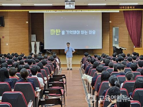 ¡¼³ªÁÖ=±³À°¿¬ÇÕ´º½º¡½¹Ú»ó¿õ ±âÀÚ= ³ªÁÖ°íµîÇб³(±³Àå °´ëâ)´Â 7ÀÏ ¿ÀÈÄ 1½Ã Çб³ âÀǵ¿¿¡¼ ¸¶ÇÑ¿ª»çÀÇ µ¶Ã¢¼º¡¤¿ì¼ö¼ºÀ» ¾Ë¸®´Â ¡®¾î?! ¸¶ÇÑ À̾߱⡯ ÃÊû °¿¬È¸¸¦ °³ÃÖÇß´Ù.