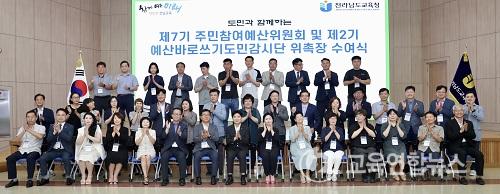 Àü³²±³À°Ã» ¡®Á¦7±â ÁÖ¹ÎÂü¿©¿¹»êÀ§¿øÈ¸ ¹× Á¦2±â ¿¹»ê¹Ù·Î¾²±â µµ¹Î°¨½Ã´Ü À§¿ø À§Ã˽ġ¯¿¡ Âü¿©ÇÑ ±è´ëÁß Àü³²±³À°°¨°ú À§¿øµéÀÌ ±â³äÃÔ¿µÀ» Çϰí ÀÖ´Ù.