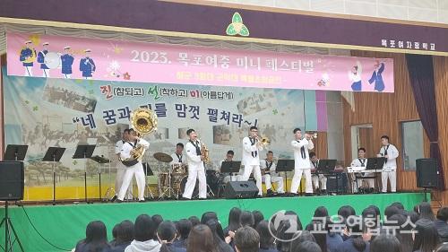 °ø¿¬À» °ü¶÷ÇÑ ¸ñÆ÷¿©Áß ÇлýȸÀå äÇö¼ Çлý(3Çгâ)°ú Çп¹ºÎ ÇлýºÎÀå ÀüÁÖÀº Çлý(3Çгâ)Àº ÇØ±º ±º¾Ç´ëÀÇ °ø¿¬À» °ü¶÷Çϸç, ¡°¸ñÆ÷¿©Áß ÇлýµéÀ» À§ÇØ ±³³» ¹Ì´Ï ÃàÁ¦¿¡ Á¤¸» ¸ÚÁø °ø¿¬À» º¸¿©ÁÖ¾î °¨»çÇϰí, ³ªÁß¿¡ ¿ì¸® Çб³ °ü¾ÇºÎ¿Í ÇÔ²² ¿¬ÁÖÇÒ ±âȸ°¡ »ý±â¸é ÁÁ°Ú´Ù.¡±¶ó°í ¼Ò°¨À» ¹àÇû´Ù.