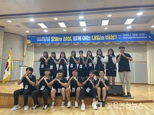 ¡¼¹«¾È=±³À°¿¬ÇÕ´º½º¡½¹Ú»ó¿õ ±âÀÚ= Àü³² ³ªÁֽÿ¡ À§Ä¡ÇÑ ±Ý¼º°íµîÇб³(±³Àå ³ªÈ£¿¬)´Â À̹ø Àü³²±³À°Ã» »êÇÏ Àü³²±³À°Á¤Ã¥¿¬±¸¼Ò°¡ ÁÖÃÖÇÑ 2023 Àü³² û¼Ò³â ±³À°Á¤Ã¥ Á¦¾È¸¶´ç¿¡¼ ÃÖ¿ì¼ö»ó 1ÆÀ(È«¼ö°æ, ÀÌÁؼº, Á¤¿¹¼Ö, Á¤´ãÈñ, ¼À¯Çö), ¿ì¼ö»ó 1ÆÀ(¹ÚÂùÈñ, ±è°Ç, ³ªÇýÁÖ, ºùÀ±ÈÄ, À弿ø), Àå·Á»ó 1ÆÀ(±è¿ëÀº, ±è¹®¼ö, ±è¹ÎÁÖ, Á¤¼ÒÇö)À» ¹èÃâÇÏ´Â ¼º°ú¸¦ °Å¾çÇß´Ù.