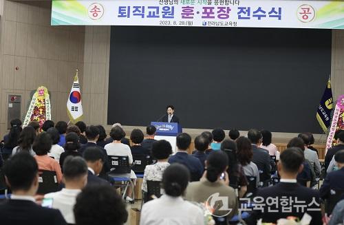 ¡¼¹«¾È=±³À°¿¬ÇÕ´º½º¡½¹Ú»ó¿õ ±âÀÚ= Àü¶ó³²µµ±³À°Ã»(±³À°°¨ ±è´ëÁß)ÀÌ 8¿ù 28ÀÏ(¿ù) û»ç ´ëȸÀǽǿ¡¼ 2023³â 8¿ù¸» ÅðÁ÷±³¿ø ÈÆ¡¤Æ÷Àå Àü¼ö½ÄÀ» °³ÃÖÇß´Ù.