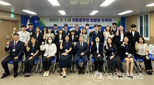 À̵éÀº 9¿ù 1ÀÏ(±Ý) ¿ÀÀü û»ç ÁßȸÀǽǿ¡¼ ÀÓ¿ëÀåÀ» ¹Þ°í °ø¹«¿øÀ¸·Î¼ÀÇ Ã¹¹ßÀ» ³»µðµ±´Ù. À̳¯ ÀÓ¿ëÀåÀ» ¹ÞÀº ½Å±Ô °ø¹«¿øÀº ±³À°ÇàÁ¤ 18¸í, »ç¼ 10¸í, Àü»ê 8¸í, ½ÄǰÀ§»ý 3¸í, Á¶¸® 7¸í, ¿îÀü 6¸í, ±â·Ï¿¬±¸ 1¸í µî ¸ðµÎ 53¸íÀÌ´Ù.