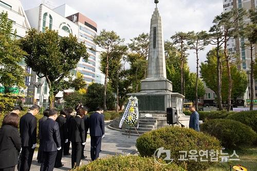 ÀÌÁ¤¼± ±³À°°¨Àº ¡°±¤ÁÖÇлýµ¶¸³¿îµ¿Àº 1919³â 3․1 ¿îµ¿ ÀÌÈÄ °¡Àå Å« ±Ô¸ð·Î ¹ú¾îÁø ¿îµ¿À¸·Î, ÇлýµéÀÌ ÁÖµµÇÑ µ¶¸³¿îµ¿ÀÌ´Ù¡±¸ç ¡°¿ì¸® Çлýµéµµ 94³âÀü ±¤ÁÖ ÇлýµéÀÇ ¼þ°íÇÑ ³ÌÀ» ±â¸®°í, ±× ºÒ²É°°Àº Á¤½Å°ú ±â»óÀ» °è½ÂÇÏ°í ¹ßÀü½ÃÄѳª°¥ ¼ö ÀÖµµ·Ï ³ë·ÂÇϰڴ١±°í ¸»Çß´Ù.