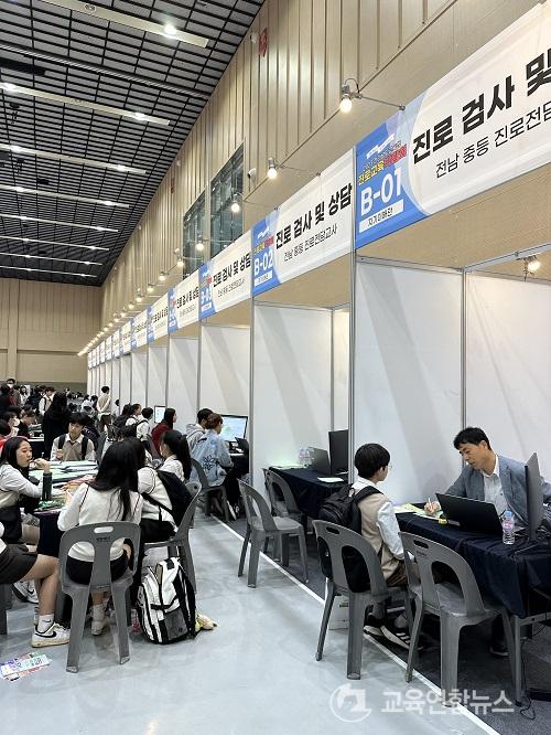 ¡®ÀÚ±âÀÌÇØ°ü¡¯ °¢ ºÎ½º¿¡¼´Â Àü³² Áßµî Áø·ÎÀü´ã±³»çµéÀÌ Á÷¾÷¡¤Èï¹Ì °£À̰˻çÁö¸¦ ÀÛ¼ºÇÑ ÇлýµéÀ» ´ë»óÀ¸·Î ¸ÂÃãÇü »ó´ãÀ» ÁøÇàÇß´Ù. 13°³ ºÎ½º¸¦ ã´Â ÇлýµéÀÇ ¹ß±æÀÌ ²÷ÀÌÁö ¾Ê¾Ò°í, °Ë»çÁö ÀÛ¼ºÀ» À§ÇØ ±â´Ù¸®´Â Çлýµµ ¸¹¾Ò´Ù.