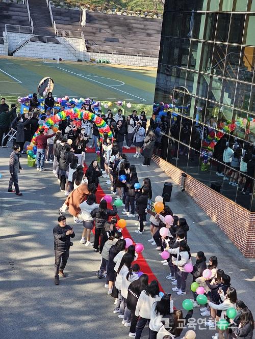 ¶ÇÇÑ, ±³»ç´Â "¼ö³âÀü ±³½Ç¿¡¼ ¼öÇèÇ¥¸¦ ³ª´²ÁÖ¸é ÇлýµéÀÌ ±äÀåÇϴ ǥÁ¤ÀÌ º¸¿´´Âµ¥ ¿äÁòÀº ¿ÀÈ÷·Á Áñ±â´Â °Í °°´Ù"¸ç "Á¦ÀÚµéÀÌ ÆíÇÏ°Ô ½ÃÇèÀ» Ä¡·¯ ¸ñÇ¥¸¦ ÇâÇØ ´Þ·Á°¡±æ ¹Ù¶õ´Ù"°í ÀÀ¿øÇß´Ù.