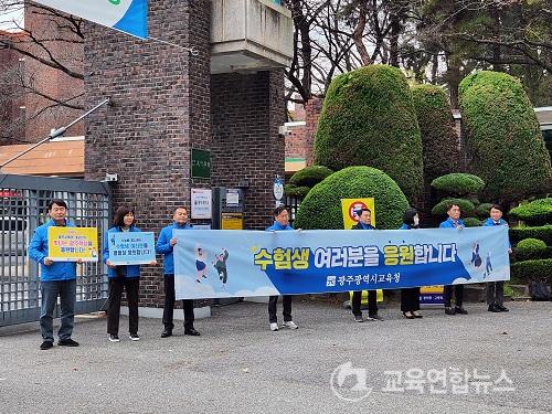 ¡¼±¤ÁÖ=±³À°¿¬ÇÕ´º½º¡½¹Ú»ó¿õ ±âÀÚ= ÀÌÁ¤¼±±³À°°¨°ú ¼ÛÁ¤¶õ °øº¸½Ç °úÀåÀ» ºñ·ÔÇÑ Á÷¿øµéÀÌ 2024Çг⵵ ´ëÇмöÇдɷ½ÃÇèÀÏÀÎ 16ÀÏ, ¿ÀÀü 7½Ã 40ºÐ ±¤Áֽñ³À°Ã» ±¤ÁÖÁö±¸ Á¦26Áö±¸ Á¦10½ÃÇèÀåÀÎ ±¤´ö°í¸¦ ã¾Æ ¼öÇè»ýµé¿¡°Ô ¼ö´É´ë¹Ú °ú ÈûÂù ÀÀ¿øÇß´Ù.