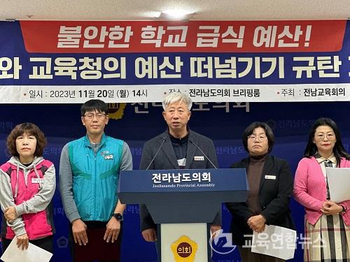 Àü³²±³À°È¸ÀÇ´Â Àü³²µµÃ»°ú Àü³²±³À°Ã»ÀÌ ½Äǰºñ ºÐ´ã·üÀ» ³õ°í °¥µîÇϸé¼, µÎ ±â°ü °£ ÇÕÀǵÇÁö ¾ÊÀº ¹«Ã¥ÀÓÇÏ°í ºÎ½ÇÇÑ Çб³ ±Þ½Ä ¿¹»êÀÌ Á¦ÃâµÇ¾ú°í ±× ÇÇÇØ´Â °í½º¶õÈ÷ Àü³²ÀÇ Çлýµé¿¡°Ô µ¹¾Æ°¡°Ô µÇ¾ú´Ù°í ºñÆÇÇß´Ù.