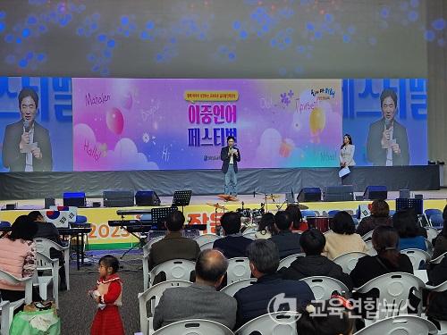 ±è´ëÁß±³À°°¨Àº ¡ººÎ¸ð ¡¤¶Ç·¡ Ä£±¸¿Í ÇÔ²²ÇÏ´Â ÀÌÁß¾ð¾î Æä½ºÆ¼¹ú¡» °ø¿¬¿¡ ¾Õ¼ Ãà»ç¸¦ ÅëÇØ¡° ´Ù¾ç¼º ¼Ó¿¡¼ âÀǰ¡ ³ª¿É´Ï´Ù. ¿ì¸®´Â ´Ù¹®È ¼Ó¿¡¼ ´Ù¾ç¼ºÀ» ã°í ´Ù¹®È¶ó´Â ´Ù¾ç¼ºÀ» À¶ÇÕÇÏ¸é »õ·Î¿î ¹®È¸¦ ¸¸µé ¼ö ÀÖ´Ù¡±¸é¼ ¡°ÅºÅºÇÑ Àü³²±³À°À» À§ÇØ ¡ººÎ¸ð ¡¤ ¶Ç·¡ Ä£±¸¿Í ÇÔ²²ÇÏ´Â ÀÌÁß¾ð¾î Æä½ºÆ¼¹ú¡» ÀÌ ´Ù¾ç¼º°ú âÀǸ¦ ãÀ» ¼ö ÀÖ´Â °ø¿¬À¸·Î ÇÔ²² Âü¼®ÇØ ÁֽŠÇлý°ú Çкθ𡤠±³»ç¿¡°Ô °¨»çÇÏ´Ù¡±°í °Ý·ÁÇß´Ù.